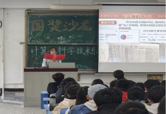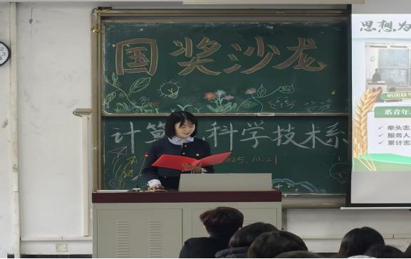 为进一步发挥优秀学生的榜样示范作用,激励同学们勤奋学习、积极进取,suncitygroup太阳集团于2025年10月21日举办了“国奖沙龙,领航成长”国家奖学金宣讲班团活动。曹荣院长出席活动并点评致辞。校办公室副主任单丽老师、suncitygroup太阳集团全体系领导、辅导员和2024、2025级计算机科学与技术本科班200余名同学参加活动。